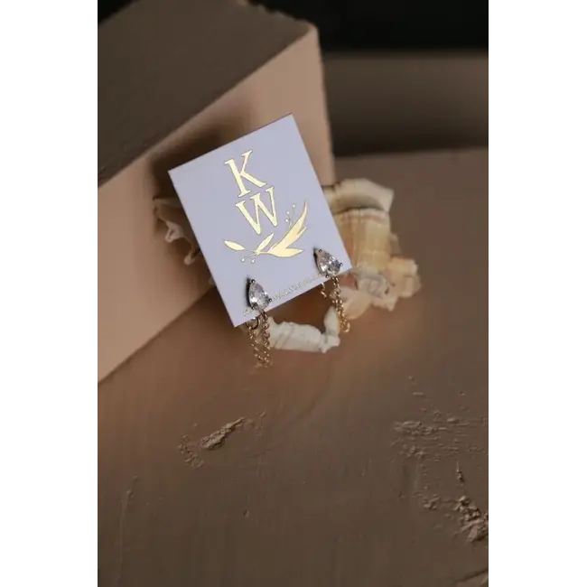 Featuring a CZ teardrop stud paired with a delicate chain that wraps and hooks securely behind the ear, this design creates an effortless layered look in one piece.