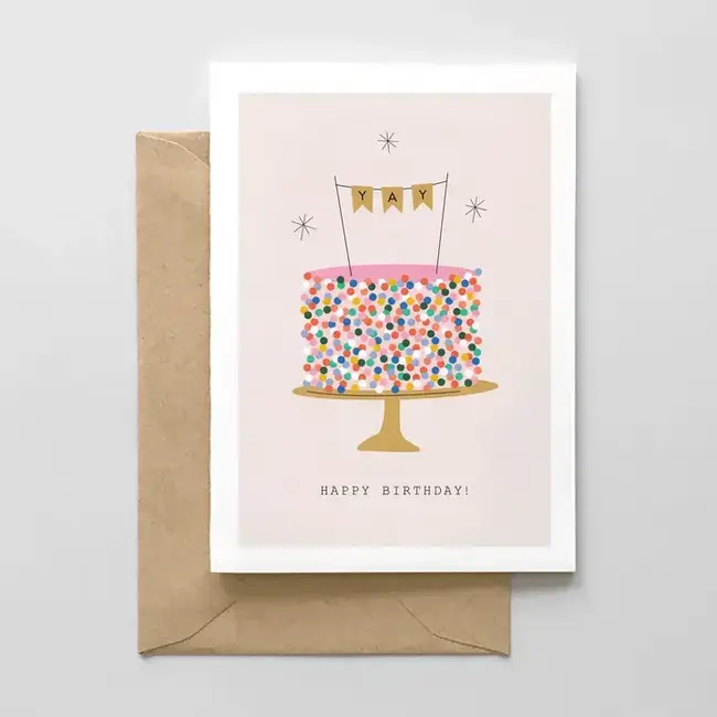 A sweet and festive birthday card featuring a colorful sprinkle cake design. Perfect for birthdays of all ages.