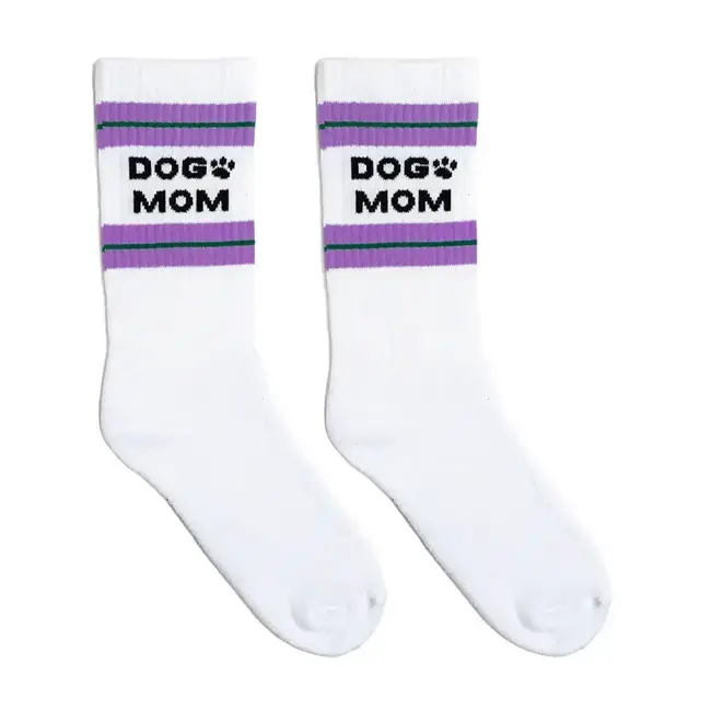 Cozy, ribbed crew socks with a playful Dog Mom design—perfect for dog lovers who want comfort and style in every step.